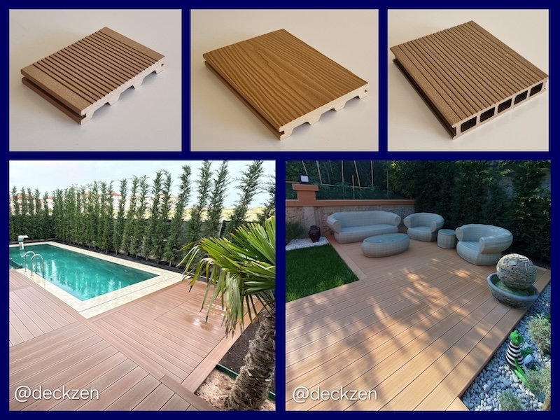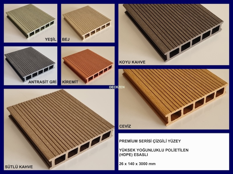 Ahşap Görünümlü Kompozit Deck Kaplamalar iki yüzeyi farklı desene sahip, kaymaz ve antibakteriyel özelliğe sahiptirler.